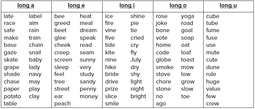 In this game, your child will practice reading and spelling words with long vowel sounds.